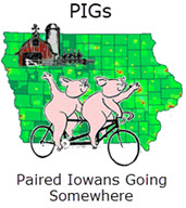 There was a short time in late 1995 and early 1996 that the name changed to TRAIN (Tandems Riding Around INdiana). In 1996 Sue and Gary Robinson took charge of the group and its name changed to HOOTs. The name represents the entire state, and it followed the trend of tandem groups to adopt an animal as the group name.